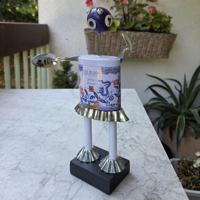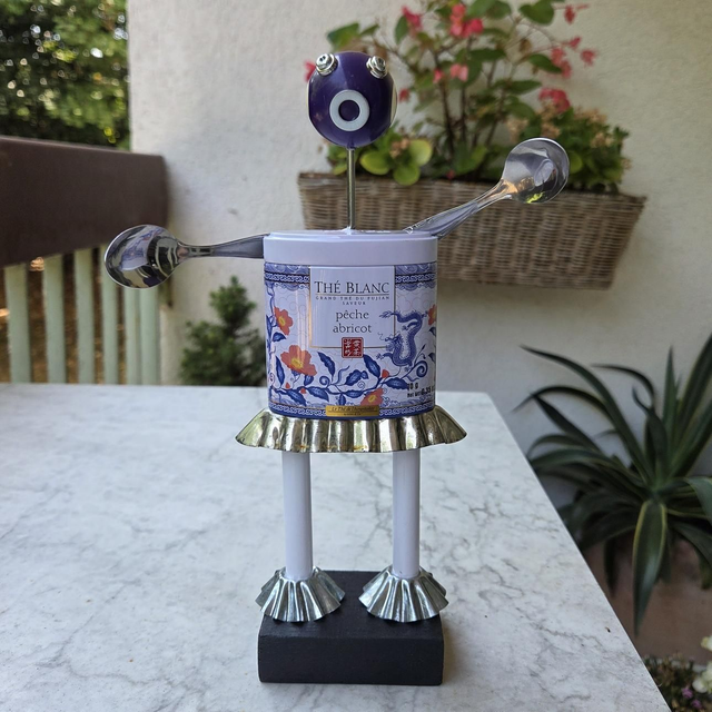 Au cœur d'une cuisine oubliée vivaient trois petits robots. Chacun d’eux avait été assemblé à partir de boîtes de thé, de cuillères abandonnées, de petits moules et d’un peu de magie... ou peut-être juste beaucoup d’imagination.
