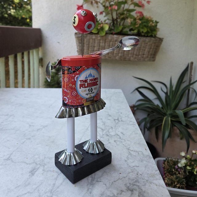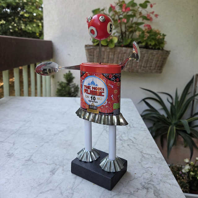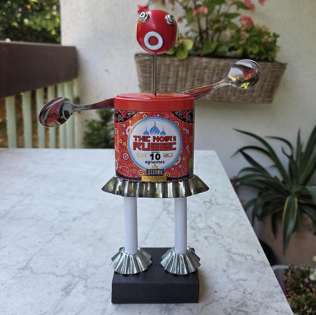 Au cœur d'une cuisine oubliée vivaient trois petits robots. Chacun d’eux avait été assemblé à partir de boîtes de thé, de cuillères abandonnées, de petits moules et d’un peu de magie... ou peut-être juste beaucoup d’imagination.